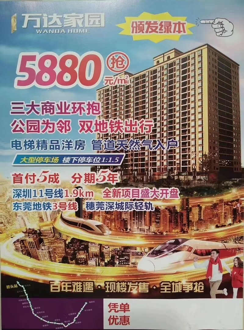 东莞长安万达零距离《万达家园》发绿本小产权 带天燃气和停车场