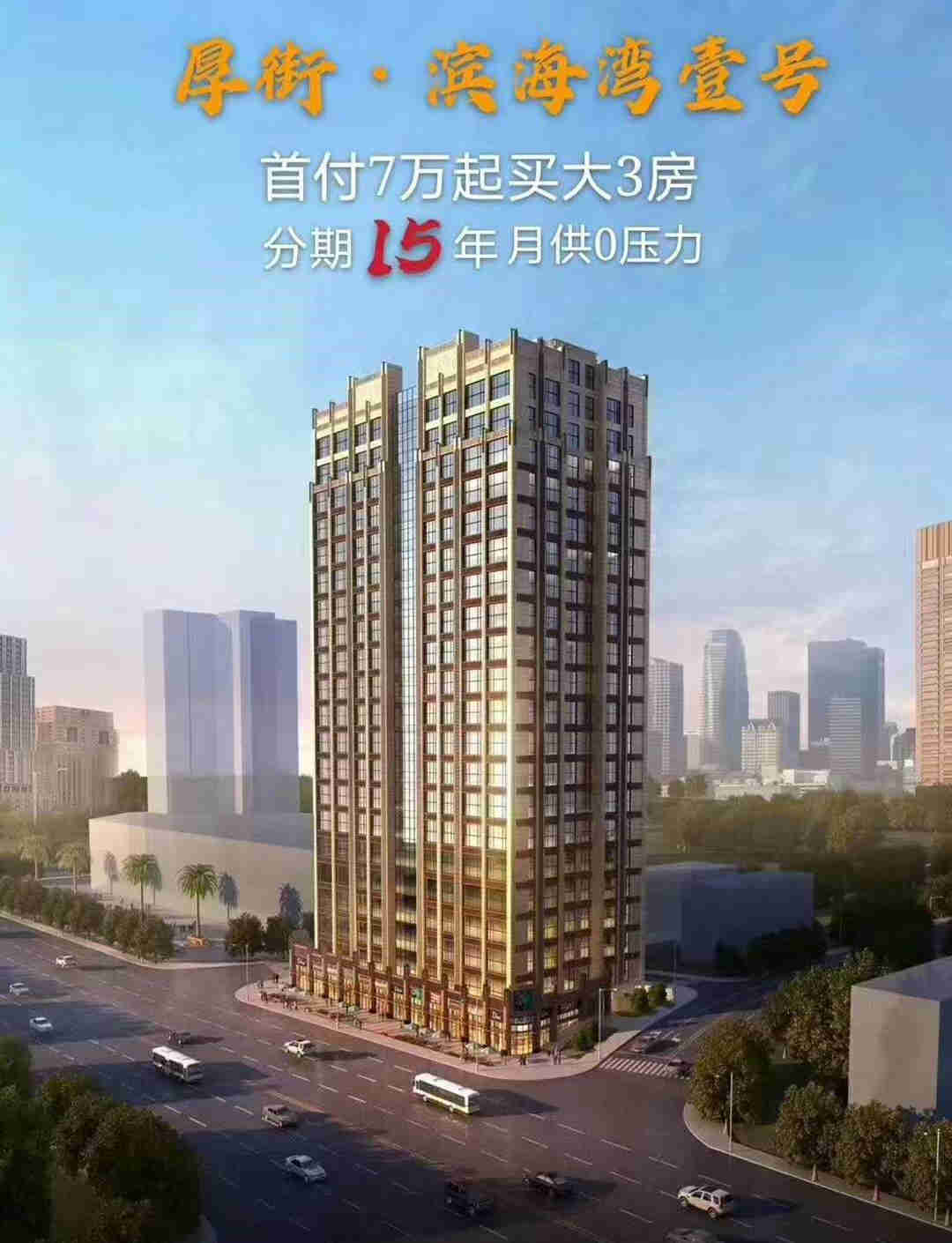 > 东莞厚街虹桥市场旁《滨海湾壹号》统建楼出售,首付7万买大三房,可分期15年