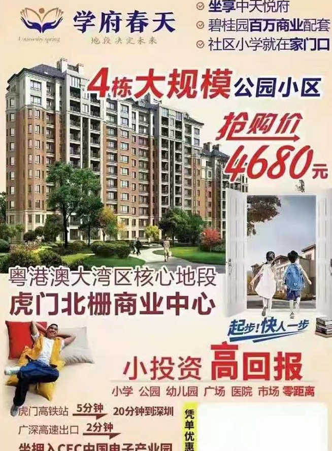 东莞虎门北栅3栋统建楼《学府春天》高铁地铁交通便利 名校旁 市场 商业配套齐全