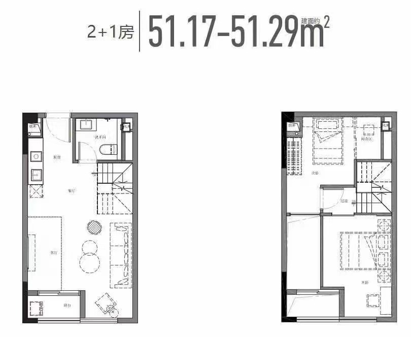 - 户型面积:51~55~65~68~86~89平