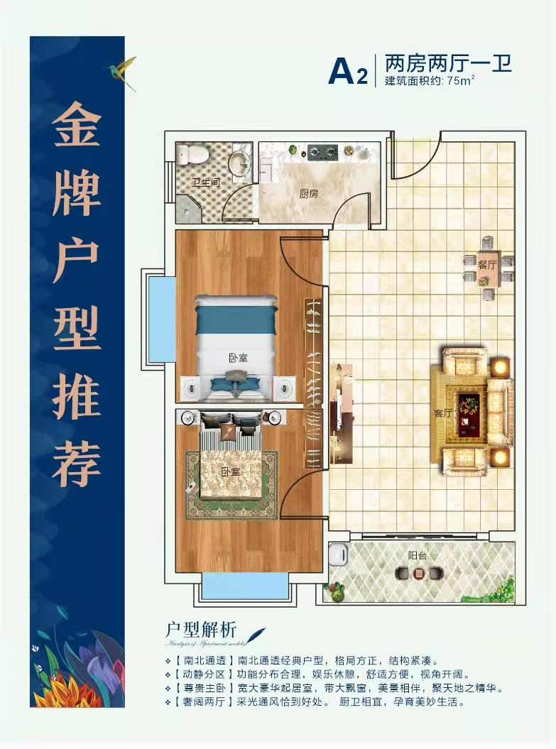 - 户型面积:42~75~87平