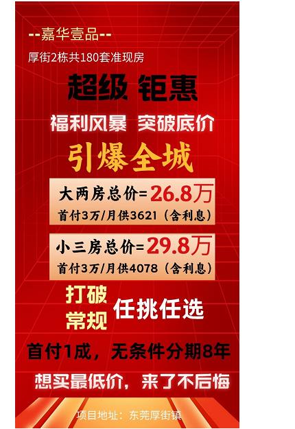 首付一成 厚街南五两大栋《嘉华壹品》统建楼 公园0距离 带停车场 交通便利