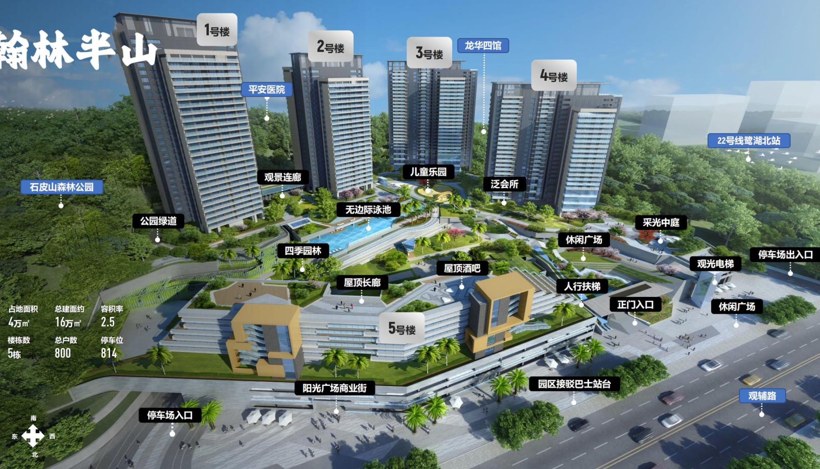 龙华观澜5栋《翰林半山》花园小区房 民水民电 通天然气 三层停车场 无边空中泳池